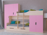 Кровать двухъярусная "Лео" дуб молочный-розовый