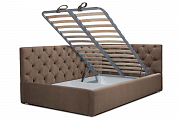 Угловая кровать будет актуальна как для детей, так и для взрослых. Мягкое изголовье создает дополнительный уют в интерьере. Качественная стяжка с декоративными пуговицами добавляет объемности модели. Изделие оснащено подъемным ортопедическим основанием. Возможно выполнение на правый или левый угол по вашему желанию. Задняя спинка обшита технической тканью.