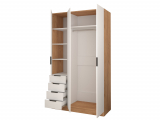 Для серии «Бруно» разработаны удобные классические, прямые, распашные шкафы. Шкафы сделаны с максимально удобным наполнением, которое обеспечивает хранение одежды и необходимых вещей. Выполнен из ЛДСП 16 мм, кромка ПВХ видимые 0,4 мм, невидимые 0,4 мм, ручки металл. При наличие выдвижных ящиков, система выдвижения - шариковые направляющие.