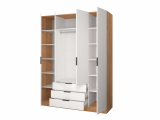 Для серии «Бруно» разработаны удобные классические, прямые, распашные шкафы. Шкафы сделаны с максимально удобным наполнением, которое обеспечивает хранение одежды и необходимых вещей. Выполнен из ЛДСП 16 мм, кромка ПВХ видимые 0,4 мм, невидимые 0,4 мм, ручки металл. При наличие выдвижных ящиков, система выдвижения - шариковые направляющие.