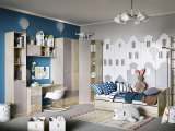 Вместительный угловой шкаф из серии "Акварель" удобен в использовании. В конструкции шкафа имеется штанга для одежды и ряд полок.